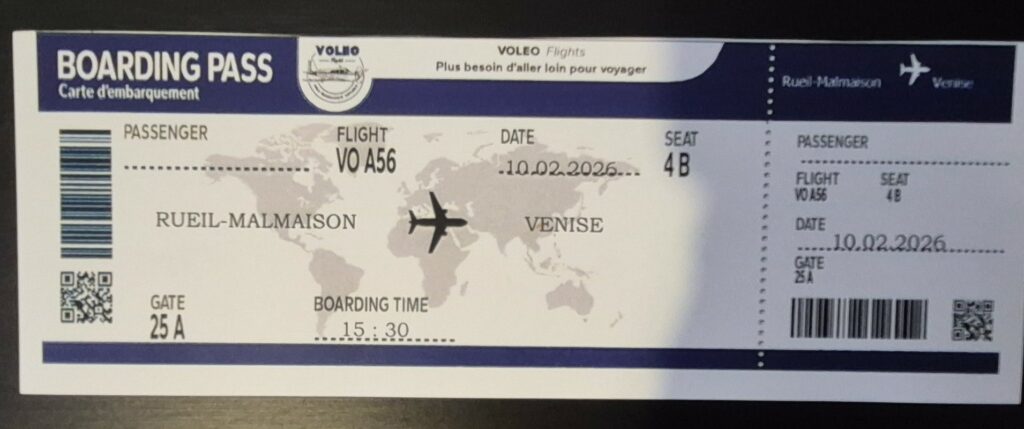 L’hôtesse de l’air a accueilli les passagers munis de leur carte d’embarquement. Après avoir donné les consignes de sécurité, les voyageurs ont pu embarquer à destination de Venise. Le survol de la ville des amoureux, à quelques jours de la Saint Valentin, a rappelé des souvenirs aux seniors de la Résidence.