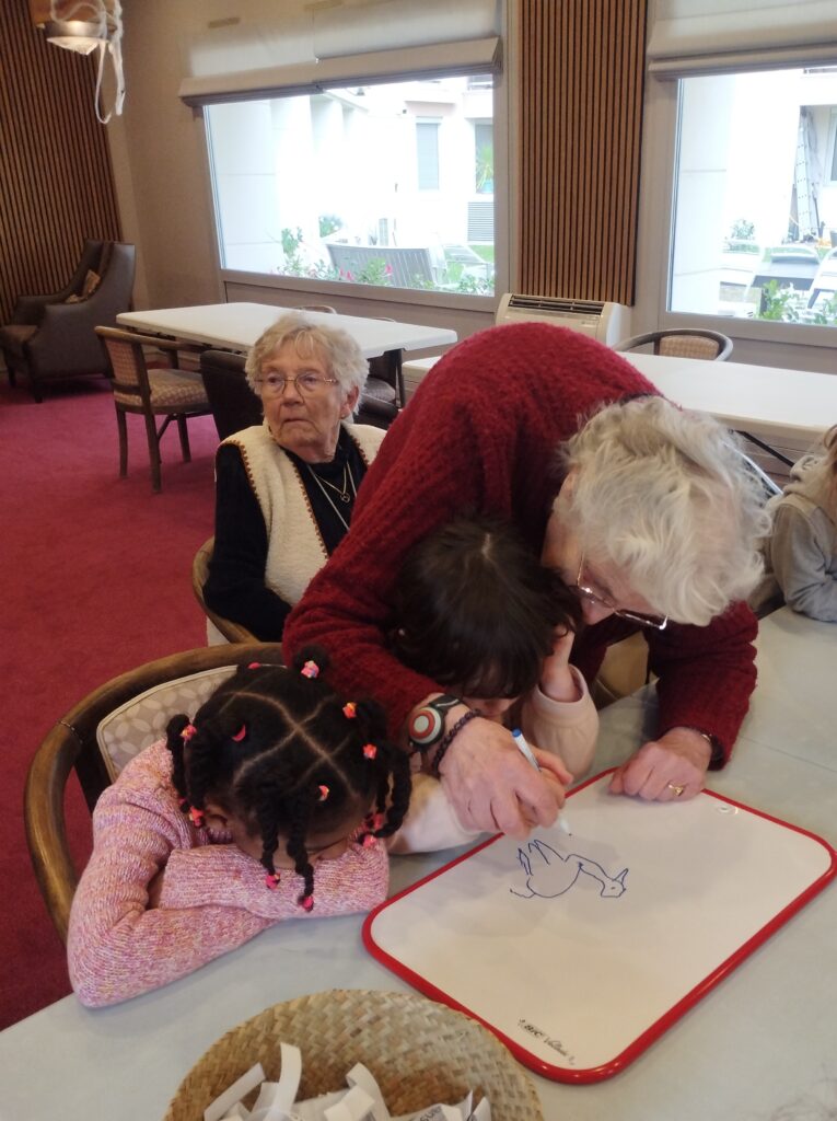 12 enfants du Centre de loisirs des Martinets sont venus jouer avec des seniors de la Résidence Services “Les Jardins du Donjon”. “Gabaky” et ‘Mime ou dessin” ont permis de tisser des complicités entre les 2 générations. Les résidents ont ensuite servi un goûter bien mérité après tant d’énergie de dépensée. Pour clore cette après-midi, les enfants sont repartis avec des…. bonbons.